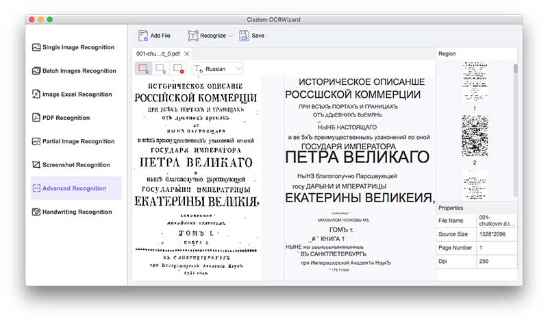 Cisdem OCRWizard is an efficient optical character recognition (OCR) software that supports transform images and scanned documents into editable and searchable text, It can recognize 25+ languages like Russian, Japanese, Korean, Chinese, etc. It can be used easily for Russian OCR.