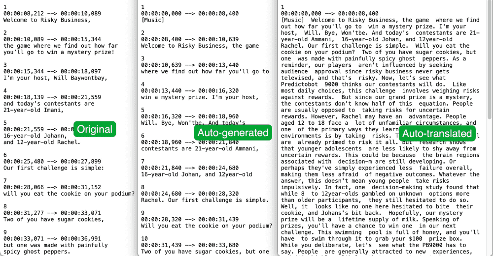 Manual vs Auto-generated vs Auto-translated YouTube Captions